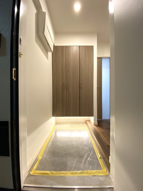 玄関は上り口が横向きになっているタイプ。宅配便やフードデリバリーの受け取り時にお部屋の中が見えづらいのが嬉しいですね。