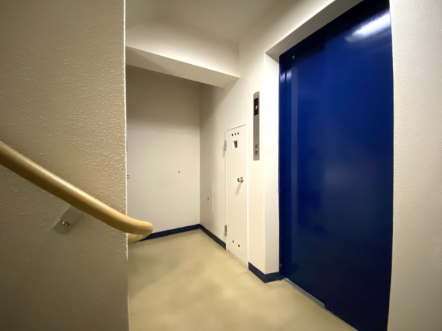 エレベーターを7階で降りるとこじんまりとしたエレベーターホールに出ました。ホールに並ぶ玄関のひとつが今回ご紹介するお部屋になります。