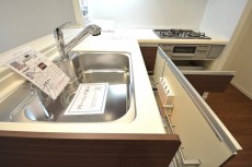 キッチンは人気のカウンタータイプ。コミュニケーションが取りやすく、調理中でもご家族との会話が弾みます。ダイニングに対しては横向きになるので、お料理を運んだりもしやすそうですね。