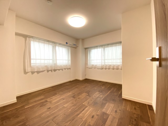 こちらは約6.3帖の洋室。南西・北西の二面採光のお部屋です。広さも十分、大きめのベッドでも余裕で置けますのでメインのベッドルームに如何ですか?