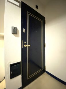 玄関ドアには安心のダブルロック。開けづらさと共に狙われづらくなる効果が期待出来るそうですよ。そういえばダミーの錠を取り付けているお部屋もありました。