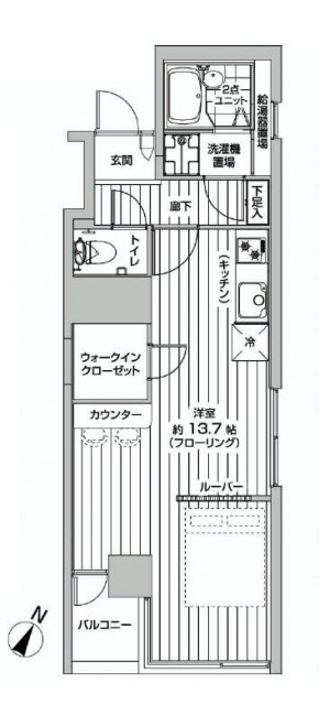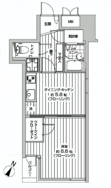 間取りのご紹介です。1DK、専有面積は32.26㎡。