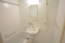 バスルームは洗面台のある2点ユニットですが、浴室乾燥機が付いています。