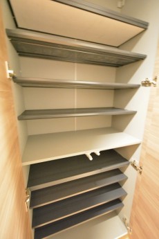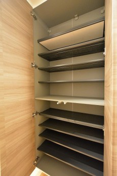手前がシューズボックス、奥が収納棚です。容量たっぷりなので、お二人暮らしであれば靴もサンダルも食材も・・・なんでもしっかり収納できそうです!!