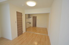 南東向きのお部屋で窓も大きく、引き戸を開けるとDKも明るくなります。