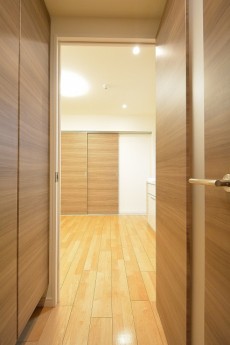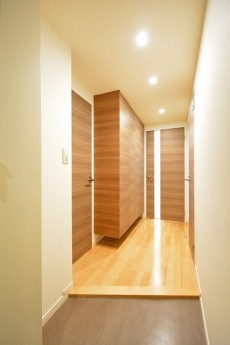 玄関を上がると、ドアが4つ。正面の扉は大容量のシューズボックスです。