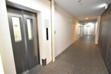 エレベーターは2基。縦長のエレベーターホールの両端にかなり離れて並んでいます。お部屋によって専用のエレベーターになるのでお気を付けください。
