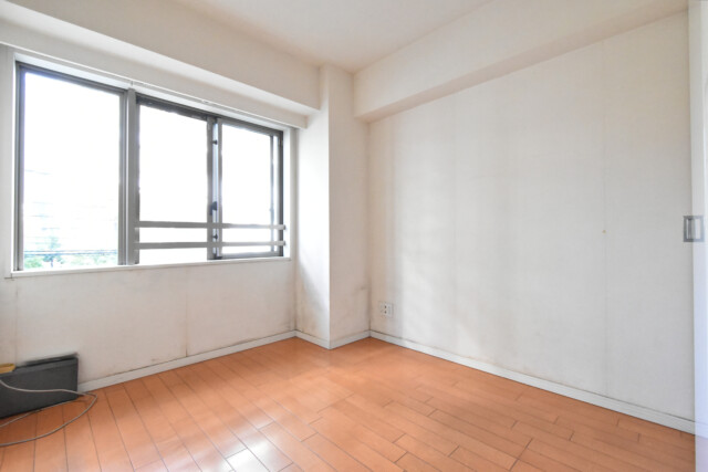 南西と北西に窓がある二面採光のお部屋です。南西側にはマンションが建っているので眺望は望めませんが、二方向に窓があると風の通りが全然違います。一説によれば換気効率が10倍近く違うとか!