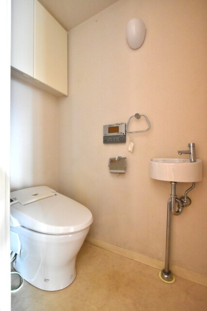 トイレは手洗いボウル、洗浄便座、吊戸棚付。