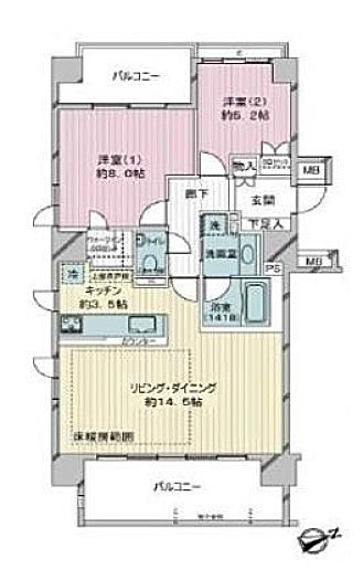 今回ご紹介するお部屋は2階、間取りは2LDK、専有面積は72.21㎡。南東向き角部屋、ダブルバルコニーが嬉しいファミリータイプのお部屋です。2階で下に住居が無いので小さいお子様でも安心ですね。広さ的には十分3LDKに出来るところを2LDKのレイアウト!生活にゆとりを求める方にお勧めです。