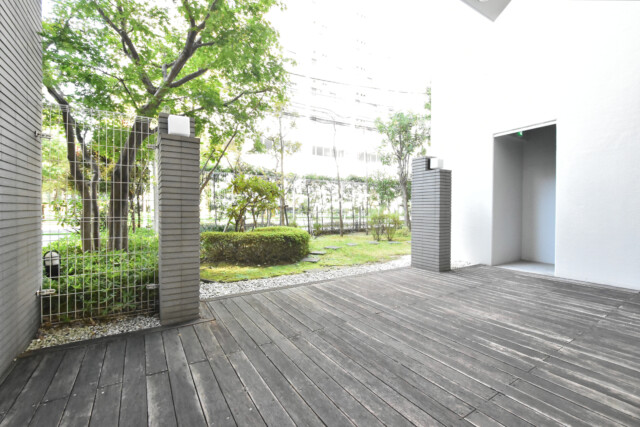 ちょうど建物の切れ目で抜けていて、2階にしてはまずまずの眺め。北側は29階建てのタワーマンションなんですが、そのおかげでこの景色になっていると言っても過言ではありません。普通のマンションなら樹木が植えられている所まで建物になっていて、この解放感はなかったと思います。