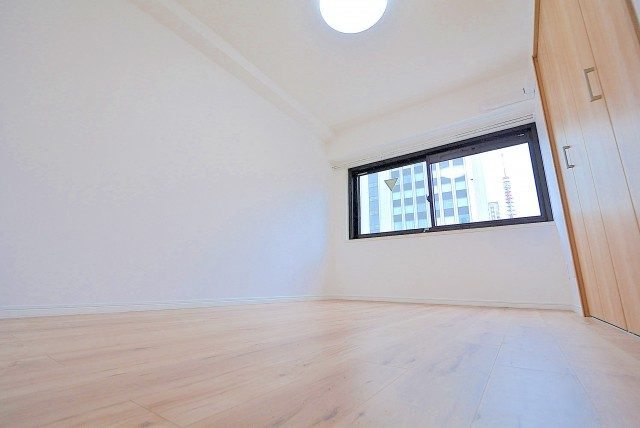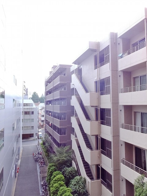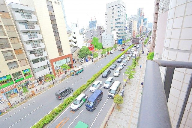 最後にバルコニーです。バルコニーへはリビングから出られます。すぐ隣のビルが目前にせまっていますが、目の前は道路になっているので風が抜けて、陽の光も入ってきますよ☆