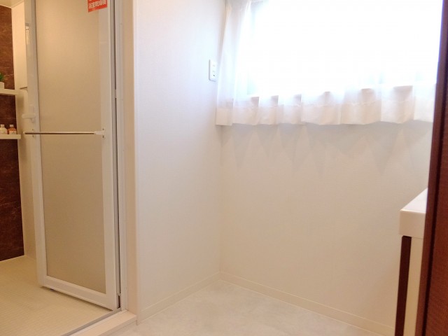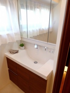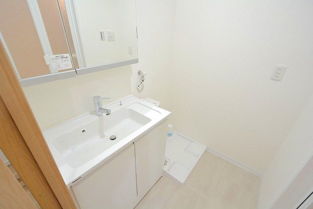 先ずは洗面室です。洗面台の横に洗濯機置場も見えますね。