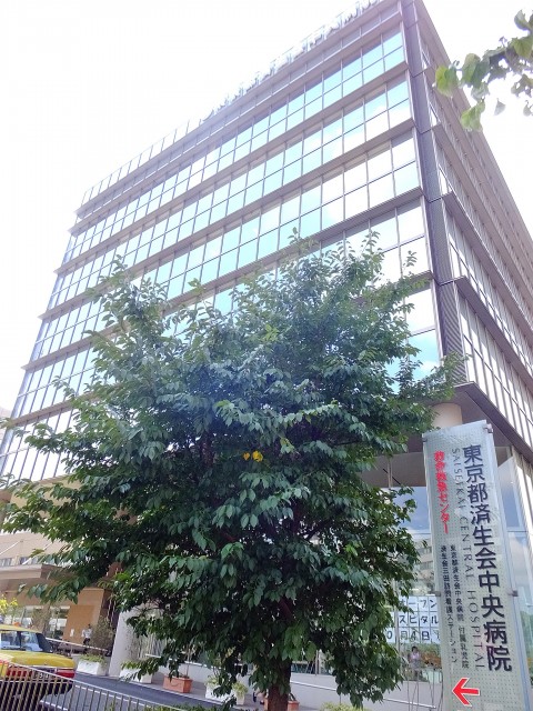 赤羽橋を渡ってすぐ、大きな病院が見えてきました。 東京都済生会中央病院。あの北里柴三郎先生が初代院長を務められた、大きな病院です♪ 近くに大きな病院があるって、とっても安心ですね(*^。^*)
