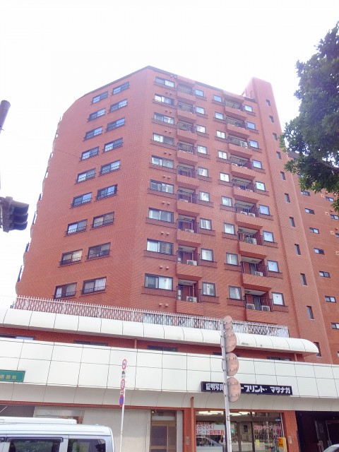 目指すマンションは桜田通り沿いにドーンとそびえるブラウンのタイル貼りが美しい12階建て。