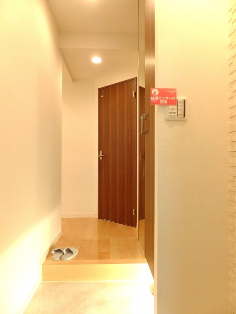 玄関には人感センサー付きライトが設置されているので、帰ってきたときには、いつも明るく照らしてくれますよ☆