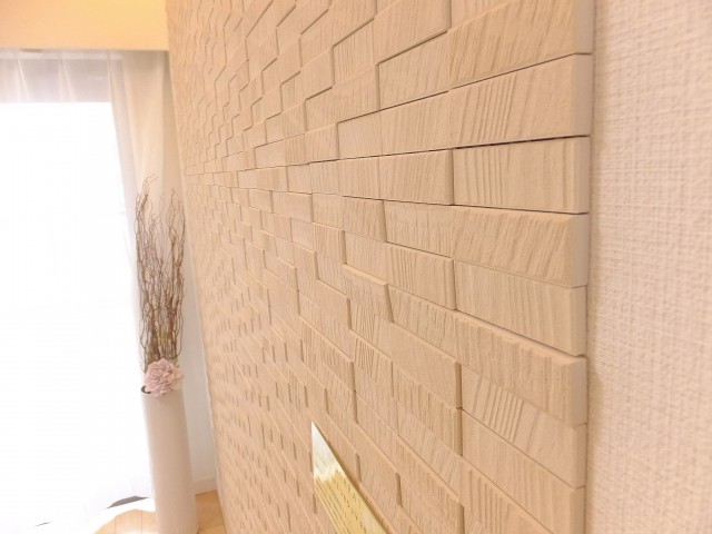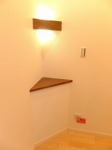 玄関の右側にはエコカラットの壁になっている小さなスペースがあります。