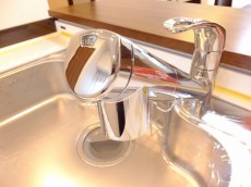 浄水機能付きの水栓、3口のグリル付きガスコンロが付いています。