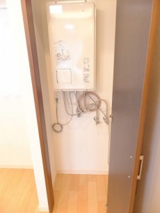 キッチンの北側にドアが一つ。開けてみると、温水器が設置されていました。