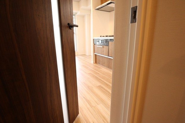 洋室の扉は、壁部分に収納して全開にする事ができます。