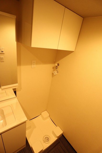 洗濯機スぺ―スになっていました。中には棚も付いていますので、洗剤などの洗濯関係の物はここにまとめて置いておけますね。