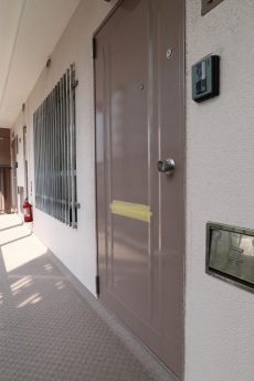 エレベーターを降りて外廊下を進むとお部屋に到着です。