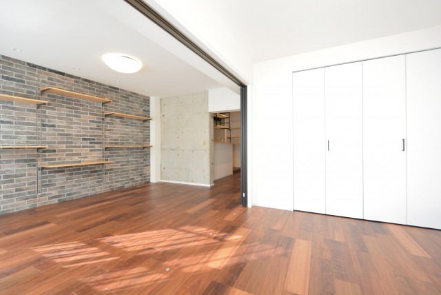 ブルックリンスタイルのスタイリッシュなお部屋です。テイストがはっきりしているので、家具なども選びやすいですね。革やアイアン、無垢材などのヴィンテージ感のある素材が合いそうです。