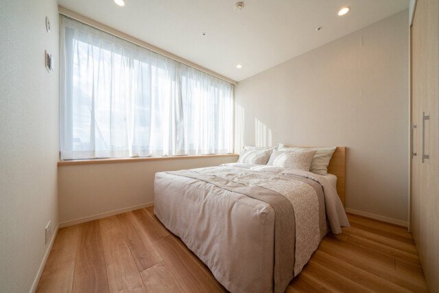 もう一つの洋室に比べると少し小さめですが、入口には開け閉めによる無駄なスペースが出来ない引き戸を使っていたり、ウォークインクローゼットが付いていたりとお部屋を広く使う工夫がされています。窓がないことも、暗く静かで寝室に使うと思えば逆にメリットかもしれませんね。
