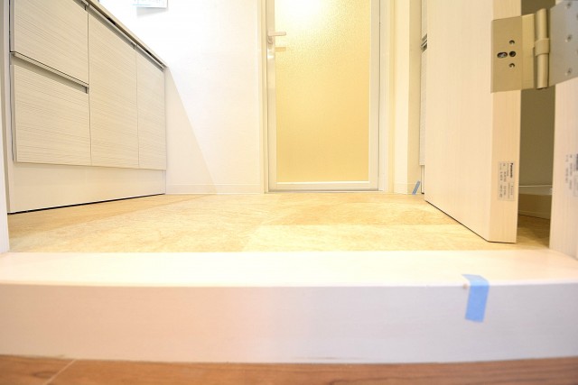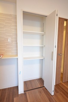 キッチン出入口横には間口は細いですが、奥行はほどよくある収納も。多分このあと棚板が入る物かと思われます。収納は多いにこしたことありません・・・!