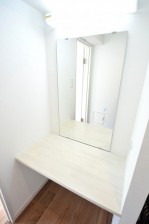 ウォークインクローゼット内部は鏡台として利用できるカウンターが設けてあり、見出しなみを整えたり、お洋服のコーディネートをチェックしたりできます。これは便利!