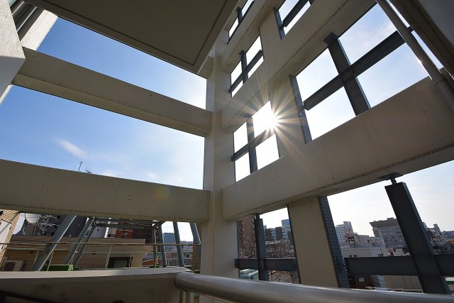マンション内部にバルコニーがあるというか・・・うまく表現できないのですが目の前はこんな感じです。時刻は朝10時少し前。朝日がキラリ。なんだかいい1日が始まりそうな気分になります。