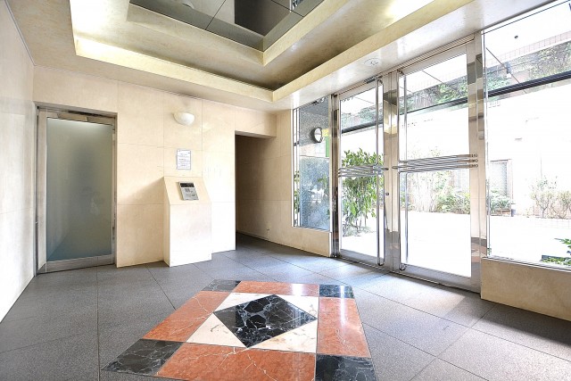 オートロックを解除し、自動ドアを入るとエレベーターホールになっています。