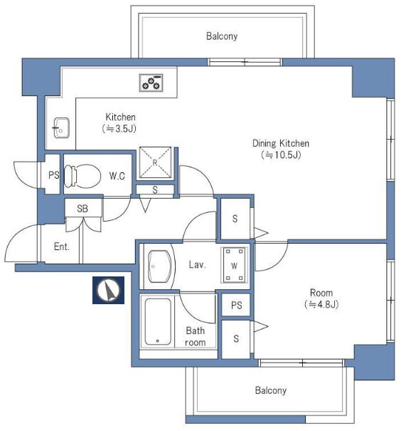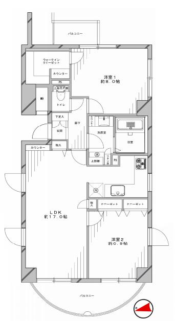 約8.0畳のお部屋は西と東に2つあるバルコニーのうち、東向きのバルコニーがつくられています。コンパクトサイズです。