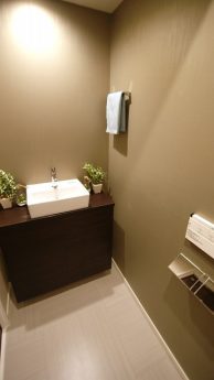 インテリアを飾っておけそうなカウンターがつくられていたり、調湿機能を持つエコカラットが壁面に使われていたり・・・凝ってます!