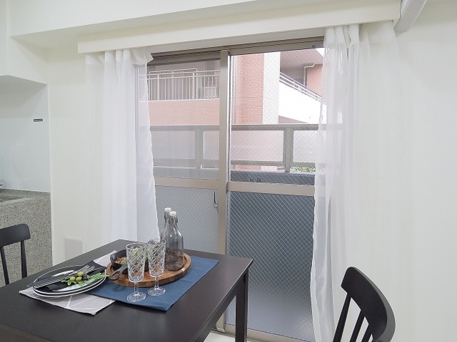 眺望はこんな感じです。外に直接面しておらず、マンション内の吹き抜け部分に面しています。お隣のお部屋とお互いにバルコニーがほぼ見えてしまう感じです(*‘ω‘ *)アラ