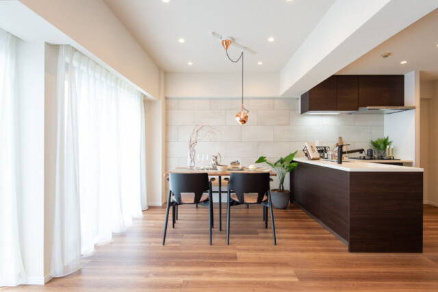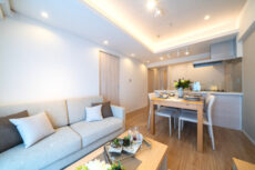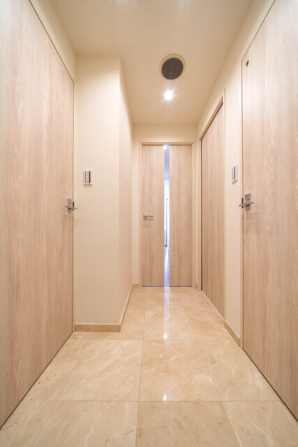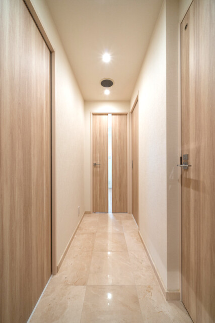 玄関から廊下にかけてには大理石が貼られた高級感のある雰囲気。と言ってもギラギラした感じではなく、ナチュラルカラーでまとめた柔らかい印象の空間になっています。さすがフルリノベ!ピッカピカですね。