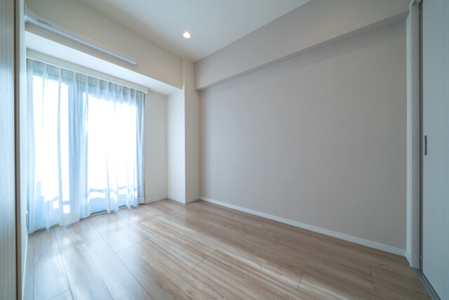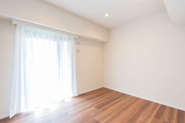 南向きバルコニーに面した明るいお部屋です。柱などの出っ張りがないきれいな形で無駄なくスペースを使えそうですね。シンプルな色使いなので、カーテンや家具などのインテリアも幅広くチョイスできますよ。クローゼット付き。