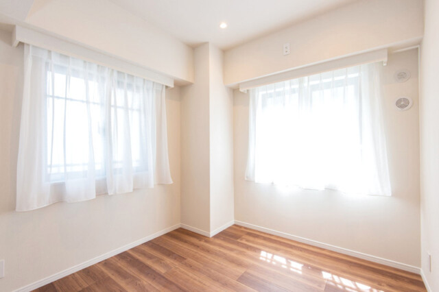 こちらは南東の二面採光!!!陽当たりに加えて風通しも良好なお部屋です。隣の洋室に比べると少し小さめですが、入口に引き戸を使っているので扉によるデッドスペースもありません。ややコンパクトですがクローゼットも付いています。