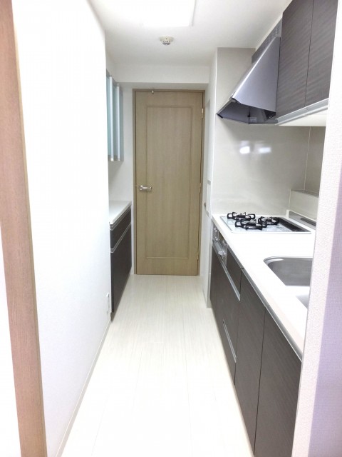 キッチンも白とダークブラウンで高級感・清潔感があり、上部・下部の棚の収納力も頼もしい限りです!!