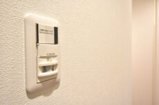玄関ドア横にはモニター付きインターホンが設置されていて、お部屋の中から訪問者を確認する事が出来ます。映像を見てから応対するかを決められるので無駄な時間をとられることもありません。