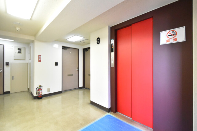 お部屋は6階。真っ赤なエレベーターに乗って到着です。