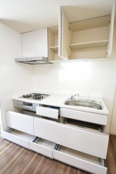 収納力は文句なし!ギュウギュウに見えますが、いちどに開けることはありませんのでご安心ください。スライドキャビネットは出し入れが楽で中身が確認しやすい優れもの。最近のものはレールが軽くていっぱい詰めてもス~っと引き出せますよ。