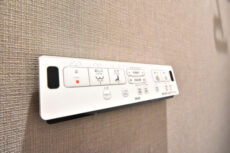 トイレはTOTO製洗浄機能付き。吊戸棚も設置されトイレットペーパーのストックもこちらに収納可能です。毎日のトイレライフも快適ですね!