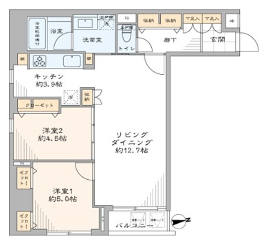 今回ご紹介するのは7階角部屋、専有面積63.96㎡の2LDK。おひとり暮らしからスモールファミリーの方まで幅広くお使いいただけるお部屋です。