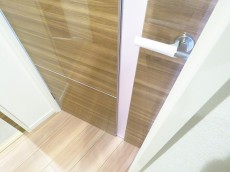 玄関をあがると廊下があり、廊下側にトイレと洗面室、廊下収納があります。