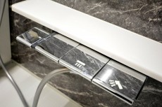 水栓は上下にワンタッチで水量・温度調整が可能で、家族みんなが使いやすく機能的な設備が揃っています。