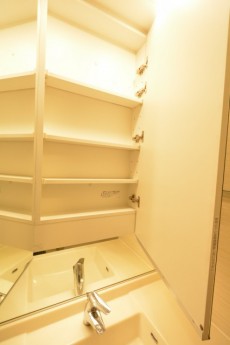 鏡の裏と横に収納スペースのありますので、ハブラシから洗顔フォームまでゴチャゴチャ散らかりがちな洗面ま