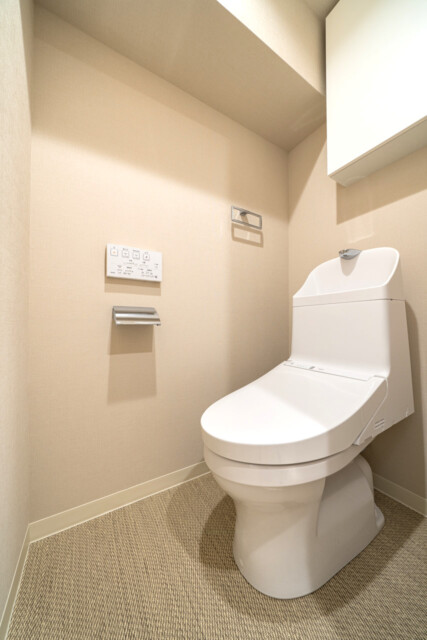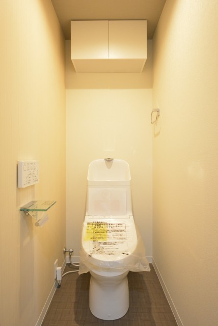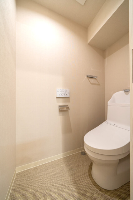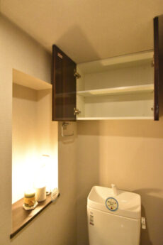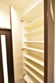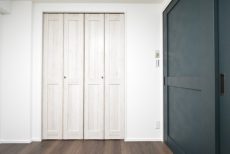 収納戸棚の横に見えるドアはトイレのドアですね。