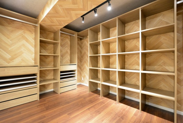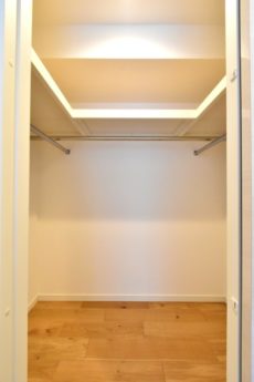 お部屋には、間口が広くて使い易そうなクローゼットも付いていました。天井までの高さがある大きなものです。中がまたお洒落ですね。