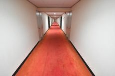 4階までが商業施設、5階から上が住居になっています。エレベーターは分かれていて、通常は商業施設から直接住居へ行く事は出来ません。エントランスから入って専用のエレベーターで上がります。住居部分の廊下は内廊下。赤い絨毯が敷かれた、ホテルの様な雰囲気の廊下でしたよ。